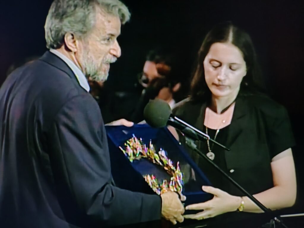Χαιρετισμό απηύθυνε και ο τότε Δήμαρχος Αρχαίας Ολυμπίας, Γιώργος Δεββές, ο οποίος τίμησε τον βραβευμένο με Νόμπελ ποιητή στο πρόσωπο της συντρόφου του Ιουλίτας Ηλιοπούλου, απονέμοντάς της τον Χρυσό Κότινο.