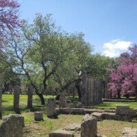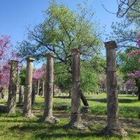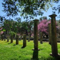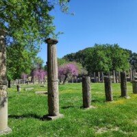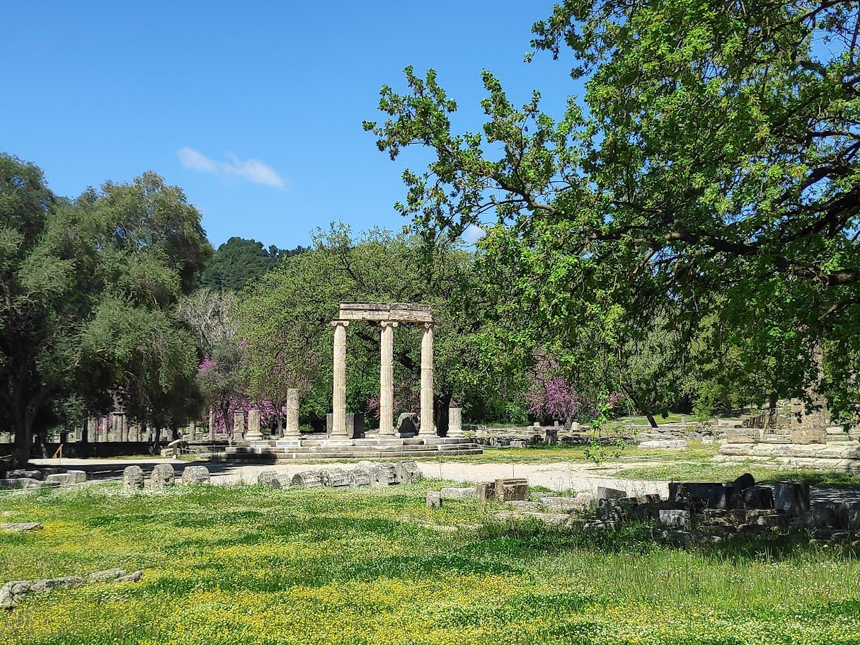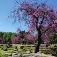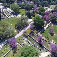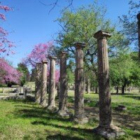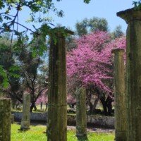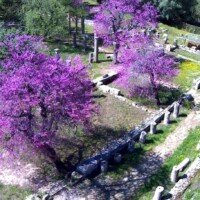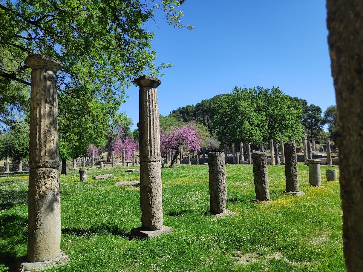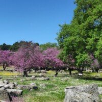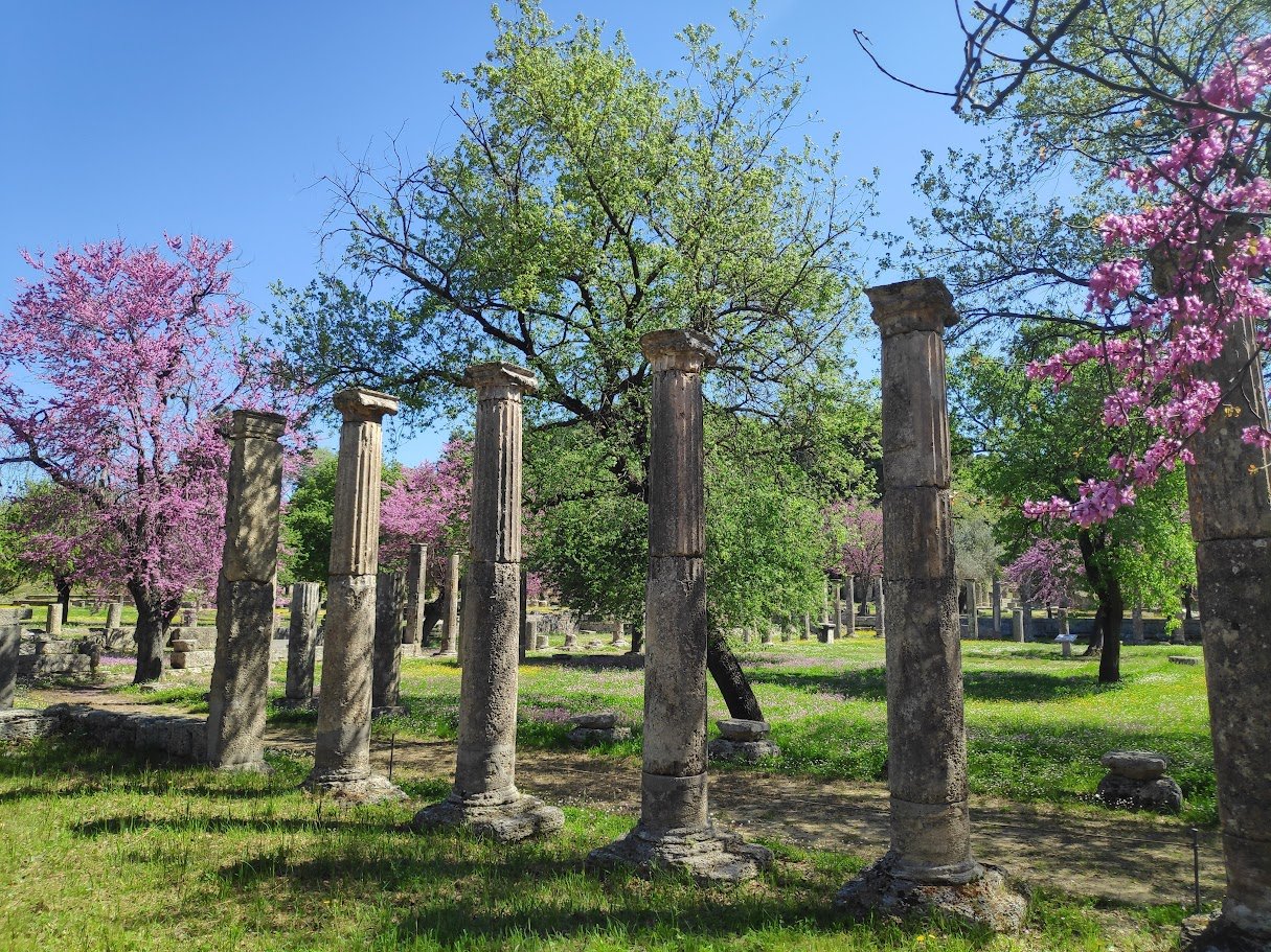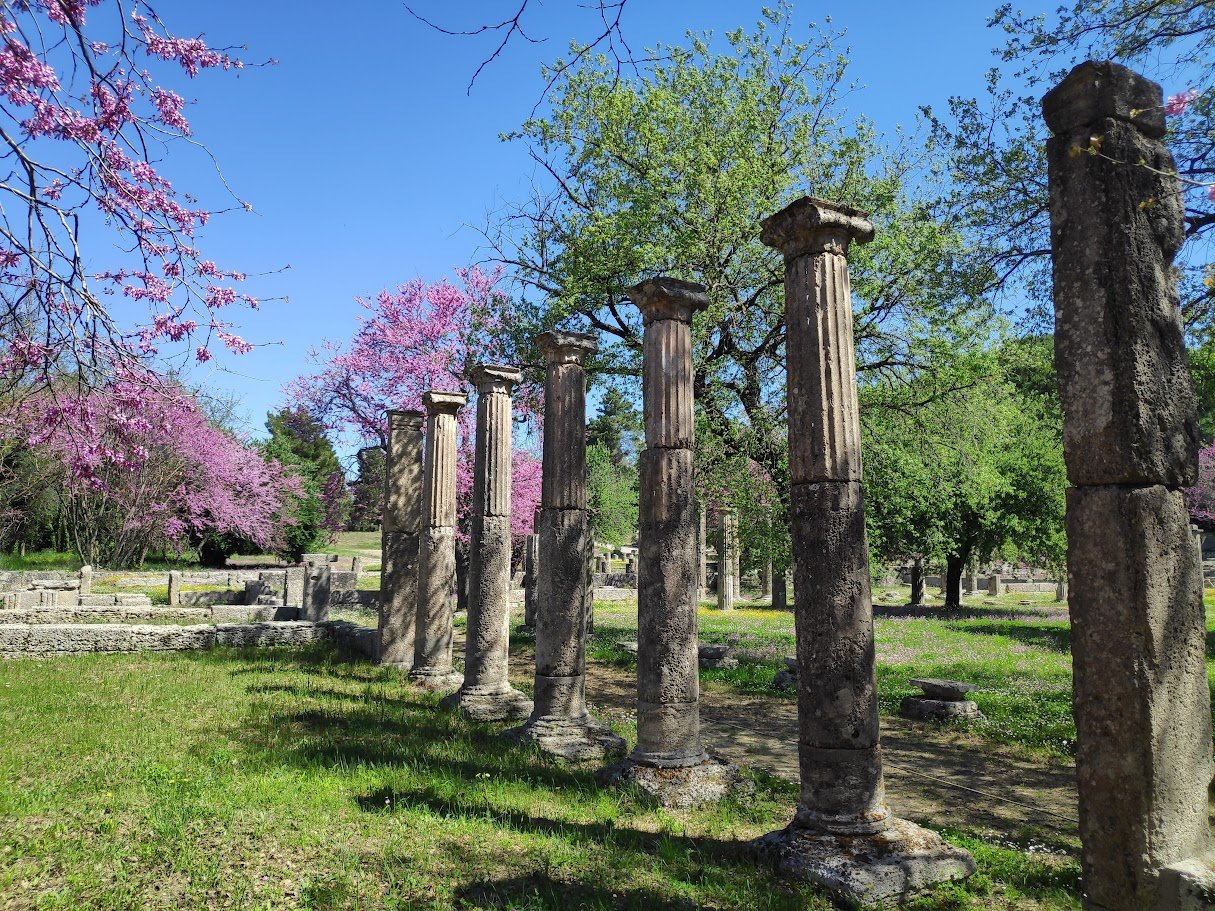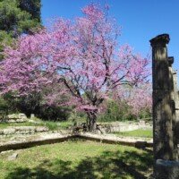 Κάθε άνοιξη, η Ιερή Άλτις προσφέρει ένα θέαμα που κόβει την ανάσα. Ανάμεσα στους κίονες από ιερό κογχυλιάτη και στα αιωνόβια δέντρα, οι κουτσουπιές ξεχωρίζουν, στολίζοντας τον αρχαιολογικό χώρο με τις θεσπέσιες ροζ-μωβ ανταύγειές τους.