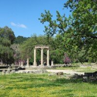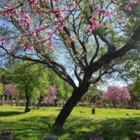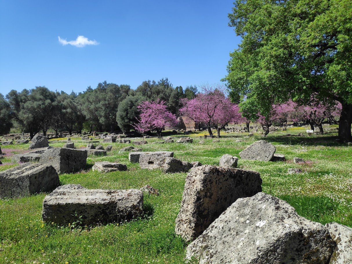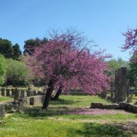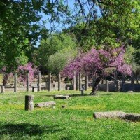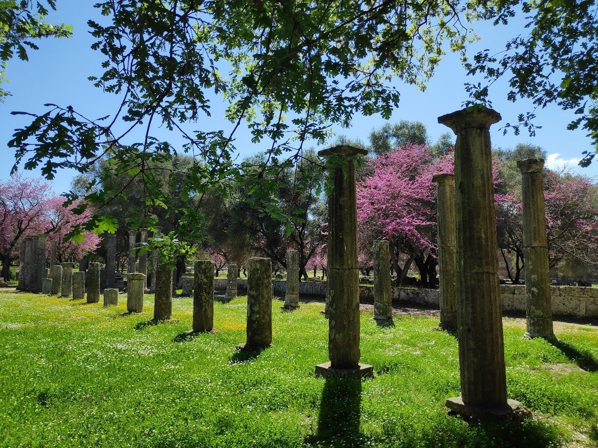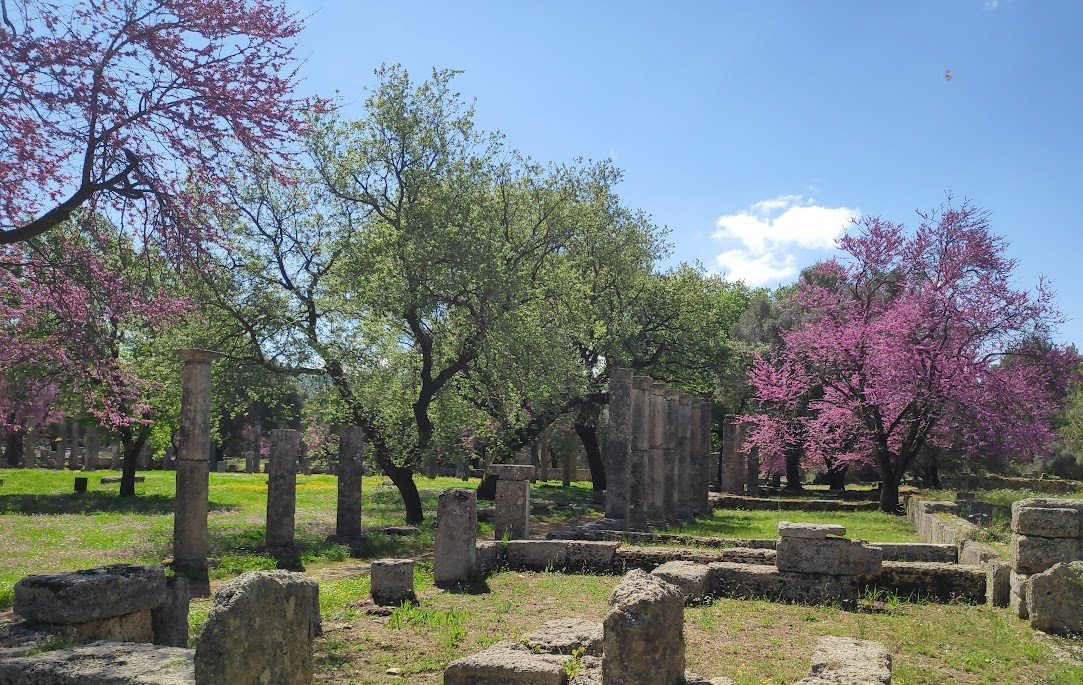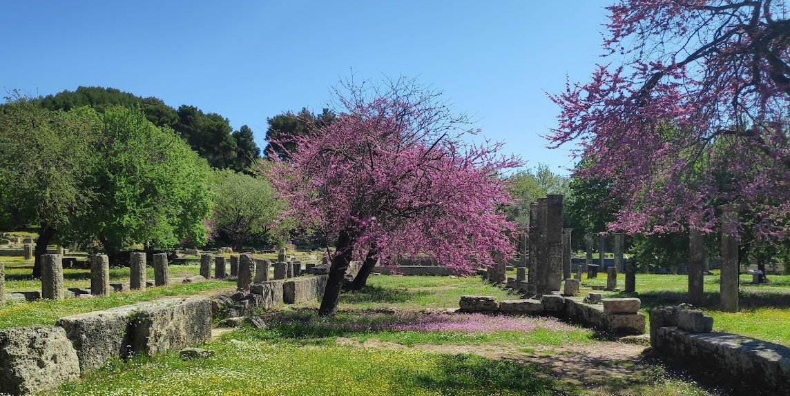 Σήμερα οι κουτσουπιές, αδιάφορες για τα ανθρώπινα δράματα, χαρίζουν αφειδώς την ομορφιά τους και μόνο εμμέσως θυμίζουν στους επισκέπτες της Ολυμπίας ότι διανύουμε την εβδομάδα των Θείων Παθών, μέσα από τους στίχους του γνωστού, κατανυκτικού ύμνου της Ορθόδοξης Εκκλησίας “Ω γλυκύ μου έαρ” που ψάλλεται κατά την Ακολουθία του Επιταφίου τη Μεγάλη Παρασκευή…