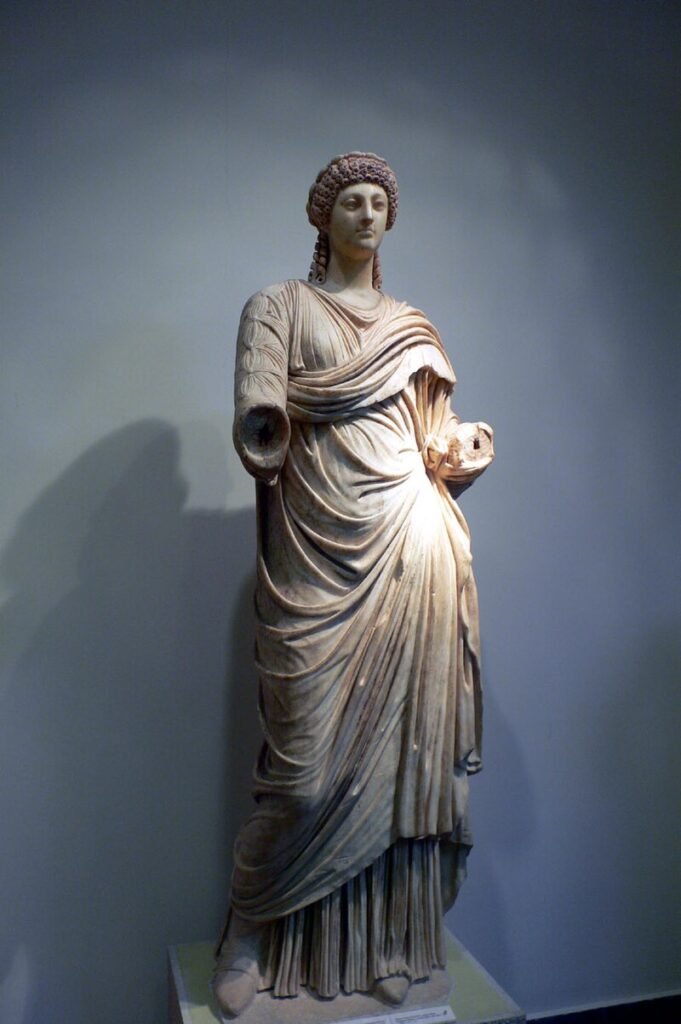 Όταν πέθανε ο Νέρων, οι Ηλείοι ακύρωσαν τους Ολυμπιακούς Αγώνες του 67 μ.Χ. Στην Αίθουσα των Ρωμαϊκών Χρόνων του Αρχαιολογικού Μουσείου της Ολυμπίας, φιλοξενούνται τα αγάλματα των δυο πλέον σημαντικών γυναικών στη ζωή του Νέρωνα, της μητέρας του Αγριπίννας και της συζύγου του Ποππαίας Σαβίνας: Ο ιστορικός Τάκιτος παρουσιάζει την Ποππαία να είναι αυτή που παρακίνησε τον Νέρωνα να δολοφονήσει τη μητέρα του το 59 μ.Χ., ώστε να τον παντρευτεί και να έχει εκείνη την επιρροή πάνω του. Οι σύγχρονοι μελετητές, ωστόσο, αμφισβητούν την αξιοπιστία αυτής της ιστορίας. Τα αγάλματα των γυναικών εκτίθενται αντιδιαμετρικά το ένα απέναντι στο άλλο, σαν από τραγική ειρωνία ή μια αιώνια ποινή, αν δεχθούμε την αναφορά του Τάκιτου.